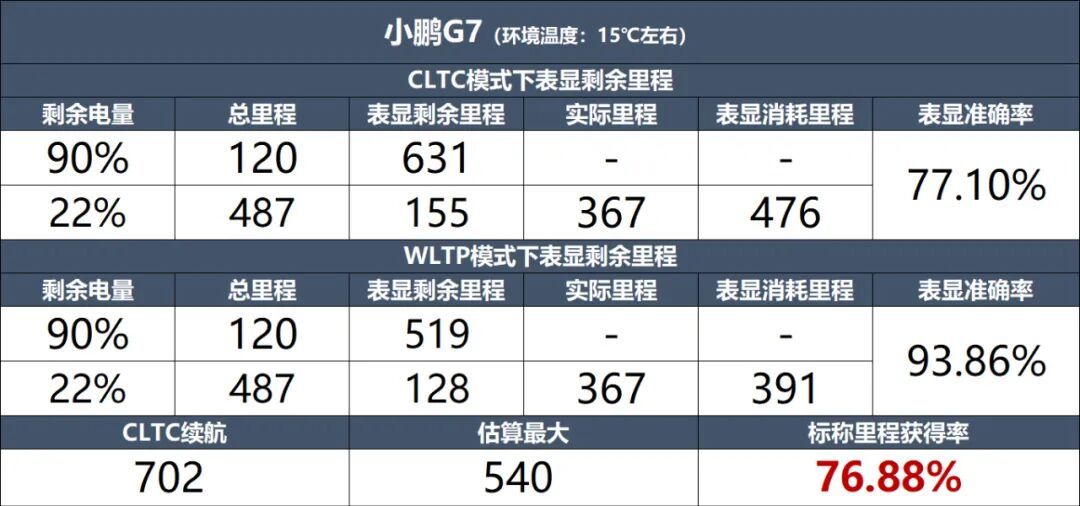 这辆车搭载了一块80.8千瓦时的磷酸铁锂电池,CLTC标称续航里程702公里。北京深秋实测15℃左右,充电至90%,CLTC和WLTP表显续航里程分别为631公里和519公里;当行驶至电量剩余22%时,CLTC和WLTP模式表显剩余续航里程分别为155公里和128公里,表显消耗476公里和391公里,实际行驶了367公里。表显准确率分别为77.10%和93.86%,还算靠谱。