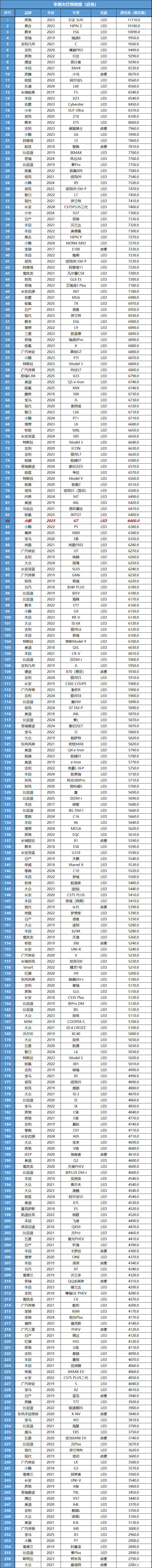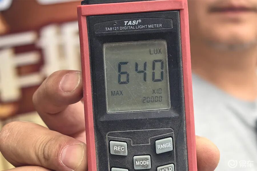 这辆车的大灯是LED光源,实测最大光照度为6400勒克斯,照明度还可以。
