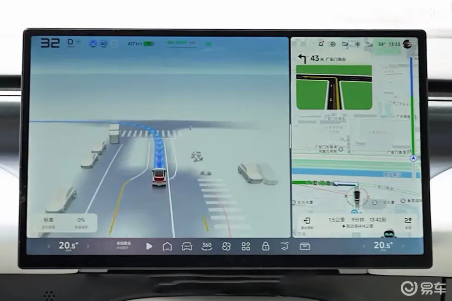 因为这辆车直接在本地部署了VLA大模型,所以需要比较大的宽和计算量,用来解决和降低基于网络VLA大模型的响应延迟,即便是在没有网络支持的情况下,辅助系统指令也不会出现崩溃。这辆车可在城区、高速、辅路、无保护右转等复杂场景实现全程NGP,实现“车位到车位”的辅助驾驶功能。 这辆车的辅助驾驶在实际体验中,对车道线识别准确,即使路面无划线也能跟随前车轨迹保持居中;遇到多车道汇入、无保护右转或机非混行时,具备“见缝插针”的能力,可自主加速变道,决策逻辑大胆且成功率较高。