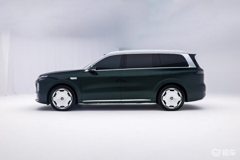 车身侧面,新车整体较为简洁大气。采用了研发投入高达2000万元的天空之镜纯平侧窗。此外新车还搭载21英寸向往之境轮毂和米其林高性能静音轮胎。