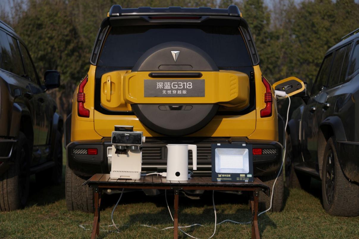 再看露营拓展能力。深蓝G318拥有818L后备厢基础容积、最大可拓展至1747L,还配备35.07kWh大电池+6kW对外放电功能,实测同时带动咖啡机、热水壶、探照灯等“全家桶”电器无压力。再加上原厂电动侧踏板、远光灯、拓展接口、可挂摄像头的前舱机位等设计,让它成为真正意义上的“露营神器”。