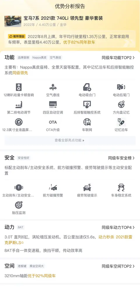 综上所述的新车含税价、用车成本、市场行情、优势分析、同款比价等数据仅供参考。在配置部分,因为二手车非标品,车辆可能会存在配置改装的情况,具体车况信息需要线下结合车辆实际情况进行综合参考。