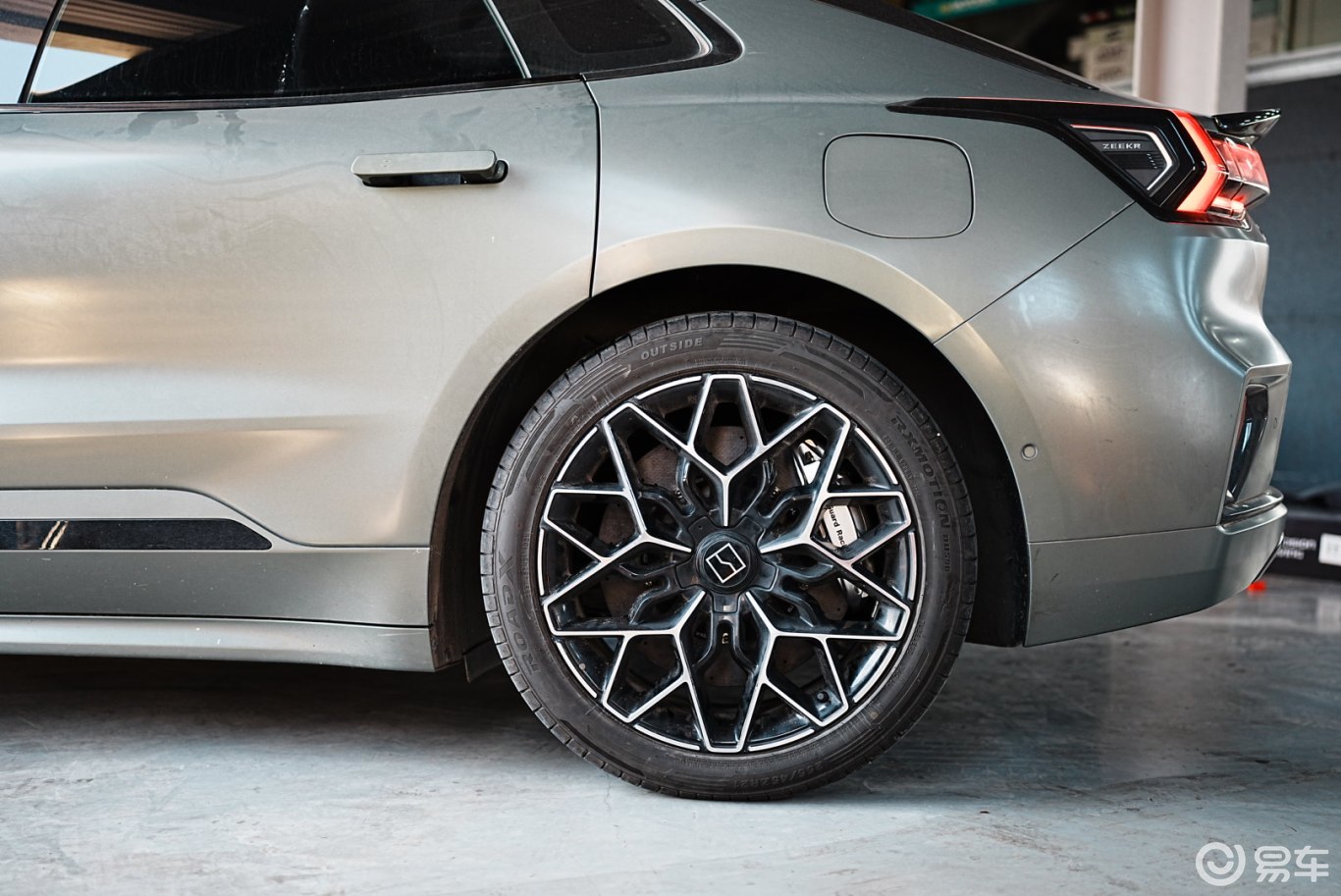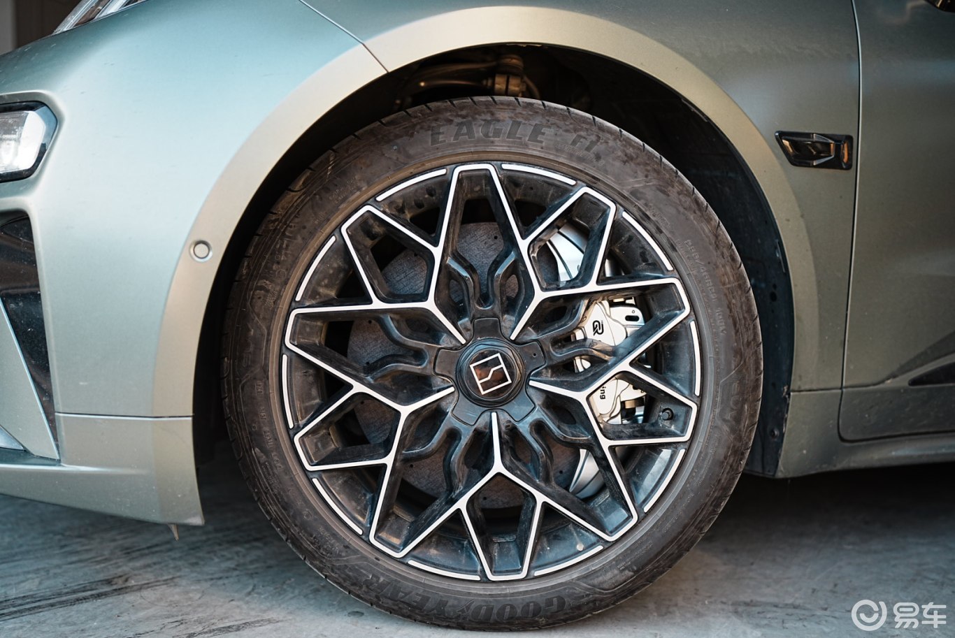 这台绿色极氪001同样选用的是Guard Racing前十后四碳陶刹车套件,但在卡钳的颜色上,则选择了亮银色卡钳,这一颜色与“绿蛤蟆”车身形成鲜明视觉对比,再搭配420mm×40mm大尺寸碳陶刹车盘,完美填充了21寸轮毂的内部空间,营造出饱满而高性能的视觉氛围。