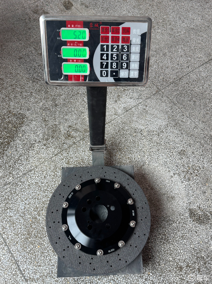 后钢碟重量9.8kg → 升级碳陶盘重量5.2kg