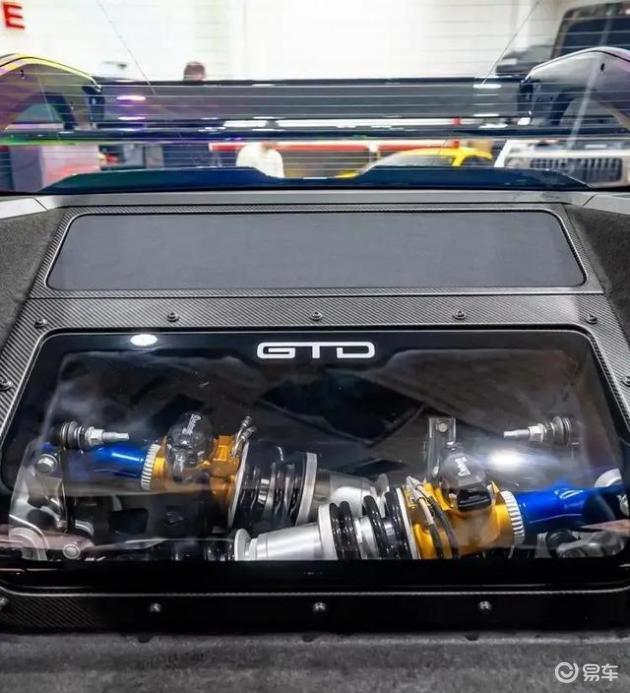 此外,Mustang GTD还配备了主动空气动力学系统,能够根据车速和驾驶状态自动调整车身姿态,提高过弯时的稳定性。其采用的推杆式后悬架结构,也更接近赛车设计理念,旨在提升车辆的操控性能和速度。