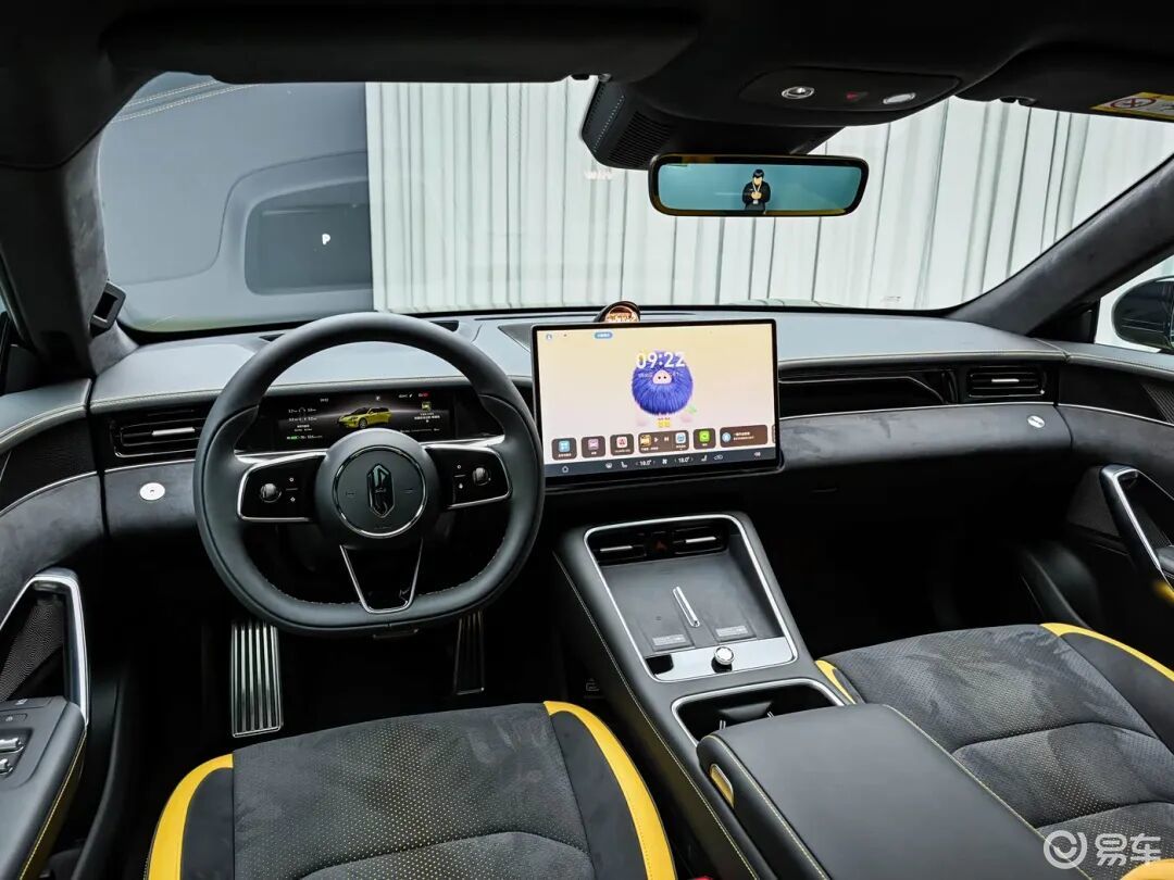 内饰方面,新车采用与外观相匹配的运动风格及运动座椅,搭载平底圆形三辐式方向盘+仪表盘+大尺寸悬浮式中控屏,提供副驾随动屏及HUD抬头显示,并采用大面积软包覆盖。配置方面,新车全系标配896线激光雷达及 华为乾崑智驾ADS 4.1,副驾提供零重力座椅、流媒体后视镜、电动前备厢、调光天幕等配置。