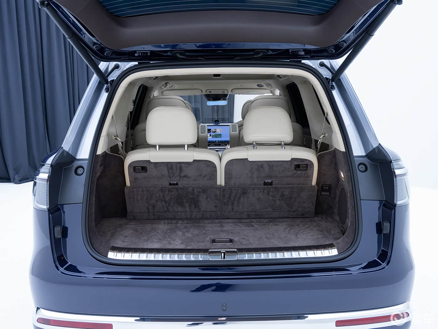 乘坐部分,全新问界M9提供4座/5座/6座多种布局,座椅功能非常丰富,6座版搭载头等舱座椅,二排还提供全新零重力座椅,三排也可实现全平放倒,充分满足用户的多种用车场景和需求。而且,基于更优的车身尺寸,新车的内部空间非常可观,后备厢空间可扩展为1800L,加上全景天幕、46英寸背投观影巨幕、HUAWEI SOUND Ultimate音响、四区自动空调等一系列高端配置,尊崇体验毋庸置疑。
