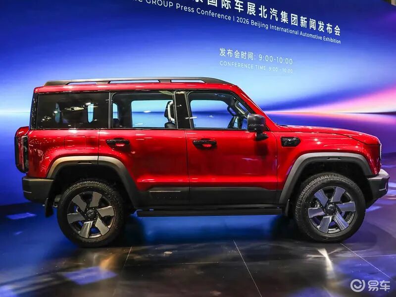 车身侧面,北京BJ40增程长续航版具备非常硬朗的造型特点,搭配粗犷的轮眉和实用的脚踏板,彰显出硬派越野车的粗犷。