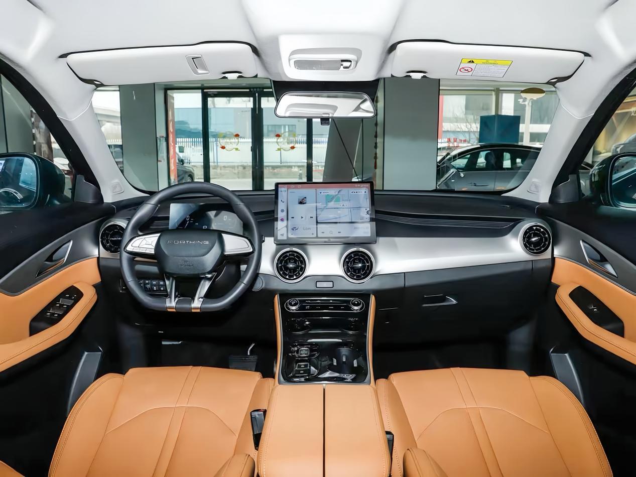 内饰方面,星海T5的内饰采用阶梯式布局,中控台以银色面板点缀。方向盘为三辐式多功能设计,前方配备全液晶仪表盘。中控台中央是一块13英寸的悬浮式多媒体触控屏。空调出风口为圆形设计,增添了内饰的个性化元素。