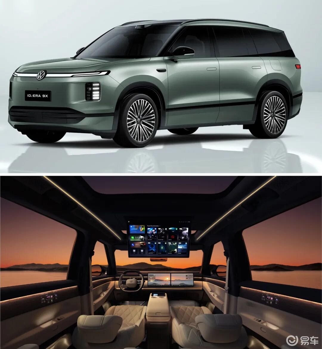 上汽大众也发布了其首款增程车型——ID.ERA 9X的内饰官图。作为大众ID. ERA序列的首款车型,这款大型增程式SUV有望在今年4月上市,将搭载65.2kWh大容量电池,纯电续航突破400km(CLTC标准)。