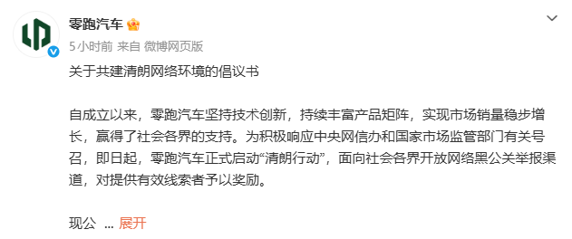 6.零跑悬赏500万打击网络黑公关